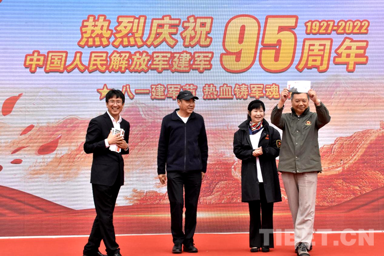 圖為圖為中國關(guān)心下一代紅偉愛國主義西藏教育基地正式簽約授牌儀式現(xiàn)場(chǎng)開國元?jiǎng)缀蟠鷤優(yōu)槊飨裾虏┪镳^贈(zèng)送簽名建軍95周年紀(jì)念封和紀(jì)念郵箋 攝影:拉姆
