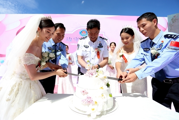 中國(guó)西藏網(wǎng)訊 8月5日,一場(chǎng)以“邊守·邊愛”為主題的集體婚禮在西藏出入境邊防檢查總站舉辦,12對(duì)戍邊民警夫妻在親朋好友和戰(zhàn)友們的見證下步入婚姻殿堂。