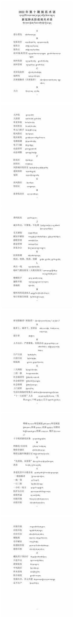 據(jù)了解,為使專業(yè)術(shù)語(yǔ)譯文更加精準(zhǔn)規(guī)范,通俗易懂,做到統(tǒng)一標(biāo)準(zhǔn),西藏自治區(qū)藏語(yǔ)委辦(編譯局)本著表意準(zhǔn)確、概念清晰、通俗易懂的原則,最終審定通過(guò)新冠肺炎防疫方面的術(shù)語(yǔ)和短語(yǔ)91條。