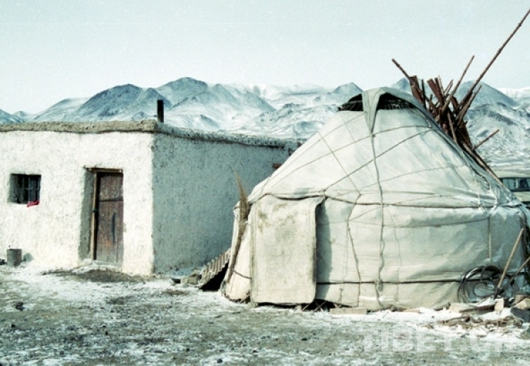 這是從新疆回遷到雙湖辦事處榮瑪鄉(xiāng)(現(xiàn)尼瑪縣榮瑪鄉(xiāng))的一戶牧民蒙古包(唐召明1990年1月攝)