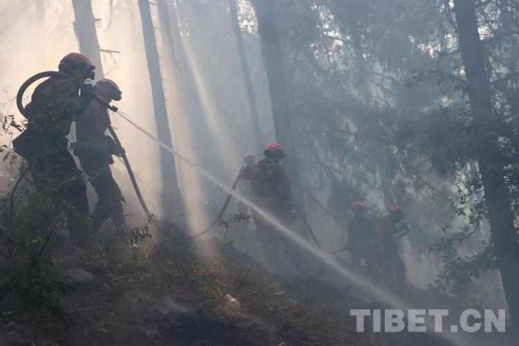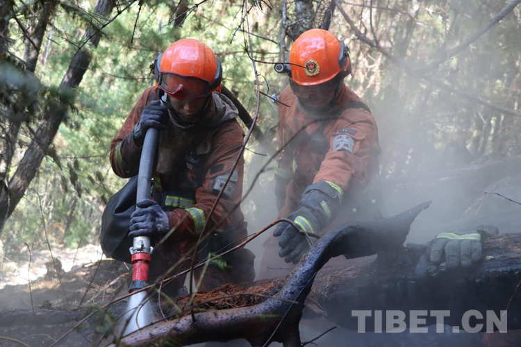 火場(chǎng)上,不說有感天動(dòng)地的故事,但是那種“無畏火魔、不怕犧牲、舍我其誰、團(tuán)結(jié)協(xié)作”的故事卻到處可見。那天,我們?cè)诮泳?,第一時(shí)間趕赴現(xiàn)場(chǎng),當(dāng)看到一條長(zhǎng)長(zhǎng)的火線猶如一條蜿蜒的巨龍盤旋在空檔村山腰,火舌在大風(fēng)助威下翻滾著向南側(cè)撲去時(shí),飛哥和我各帶領(lǐng)10名黨員骨干以南北兩翼夾擊的陣勢(shì)迎戰(zhàn)火魔。在高達(dá)2800米的原始林區(qū),夜里溫度接近-5℃,槍頭手高琪已全身上下濕透并伴隨冰片的出現(xiàn),隱約透著讓人冷顫的寒光,顫抖的身體讓槍頭不斷左搖右擺,但他毅然肩扛槍頭,勇斗火魔。撲救完畢后,剛要準(zhǔn)備休整,中隊(duì)接到殲滅山頂火點(diǎn)的任務(wù),火情就是命令,指戰(zhàn)員背著沉重的裝備在近70-80度的亂石陡坡上,抓著樹枝一步步向上攀爬,16年兵齡的王建紅在爬山過程中使勁喘息,即使空氣中彌漫著飛舞的灰,也為吸取更多的氧氣保持體力;接近山頂時(shí),一顆直徑約80cm的滾石從山頂滾落,體型弱小的二級(jí)消防士曹橋在緊促的避險(xiǎn)哨音中采取緊急避險(xiǎn)措施成功躲避,滾石與他擦肩而過,但危險(xiǎn)的環(huán)境未能抑制他戰(zhàn)斗的決心。中隊(duì)指戰(zhàn)員暢談此次滅火作戰(zhàn)感受時(shí),都紛紛笑言:“我們從海拔2300米打到了3700米,相當(dāng)于從察隅到了拉薩?!?1日,中隊(duì)轉(zhuǎn)戰(zhàn)火場(chǎng)西南線,此時(shí)經(jīng)過5天的連續(xù)奮戰(zhàn),指戰(zhàn)員的思考能力和興奮的感覺消失殆盡,只剩下機(jī)械式行走的軀體,膝蓋有舊傷的戰(zhàn)斗班班長(zhǎng)王明因?yàn)槌?fù)荷運(yùn)動(dòng)已疼痛難忍,但他在咬牙堅(jiān)持。班長(zhǎng)宋遠(yuǎn)金、扎西歐珠主動(dòng)擔(dān)當(dāng)不畏艱險(xiǎn),從不到2300多米的地方,背著滅火裝備和滿滿的水桶,爬到4000米的山頂排除隱患,清理煙點(diǎn)。