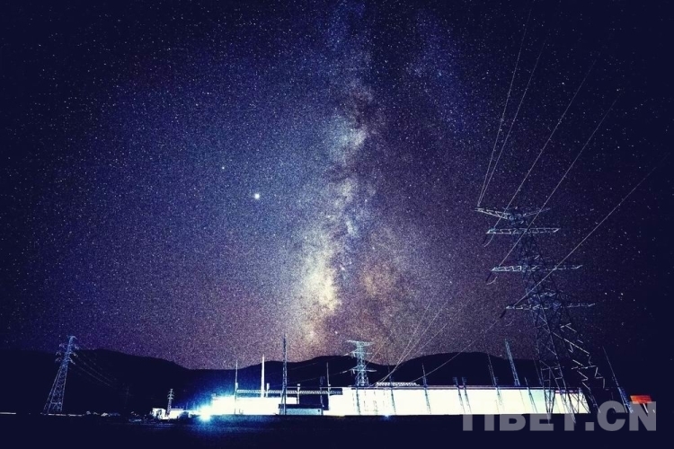 圖為星空下的高原變電站