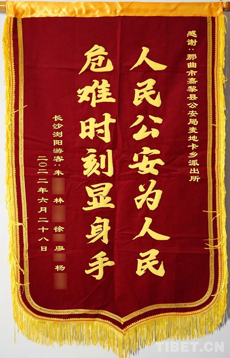 近日,那曲市公安局收到了一份特別的禮物,這是一面印著“人民公安為人民、危難時(shí)刻顯身手”的錦旗和一封飽含深情的感謝信。這份特別的禮物是湖南市民朱先生、徐先生寄到西藏的,以此表達(dá)對(duì)那曲市公安局、那曲市嘉黎縣公安局麥地卡鄉(xiāng)派出所民警的感激之情。
