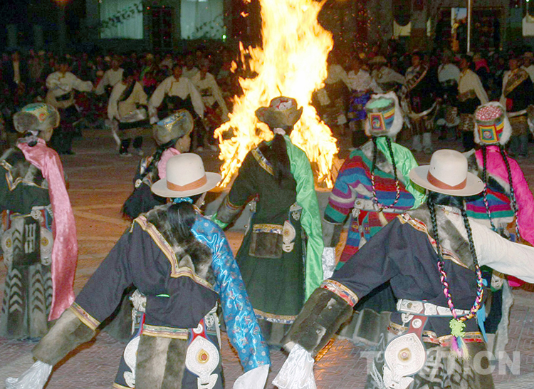 這是尼瑪縣群眾,在縣城圍著篝火跳起歡樂的“鍋莊”舞(唐召明2013年攝)