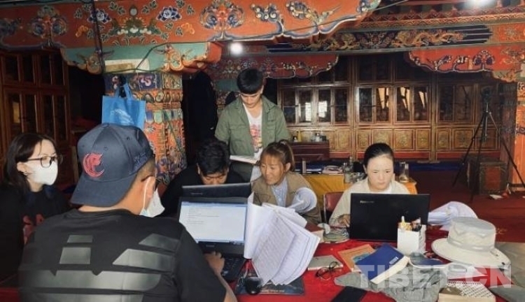 圖為2021年,西藏民族大學(xué)實習(xí)生參與布達拉宮藏經(jīng)的記錄、統(tǒng)計工作