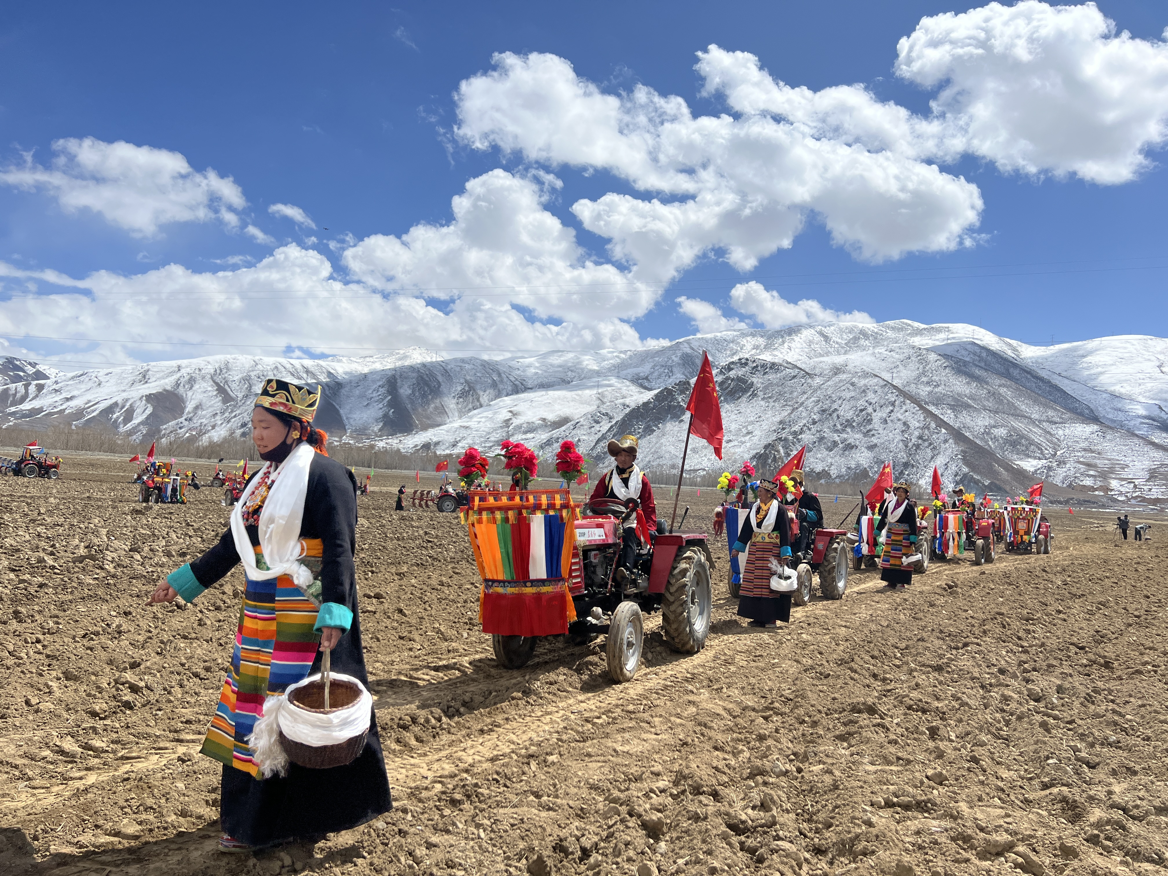 春耕,是古老土地與現(xiàn)代生活的碰撞。在西藏自治區(qū)山南市乃東區(qū)門中崗社區(qū)的春耕儀式上,身著盛裝的村民在薩日索當中拋灑著青稞種子。這塊位于西藏歷史上第一座宮殿雍布拉康南側(cè)的農(nóng)田,也是西藏第一塊種植谷物的農(nóng)田,見證了西藏先民從“逐水草而居”的游牧生活向“日出而作,日落而息”的農(nóng)耕生活的轉(zhuǎn)變,開啟了西藏農(nóng)耕歷史。