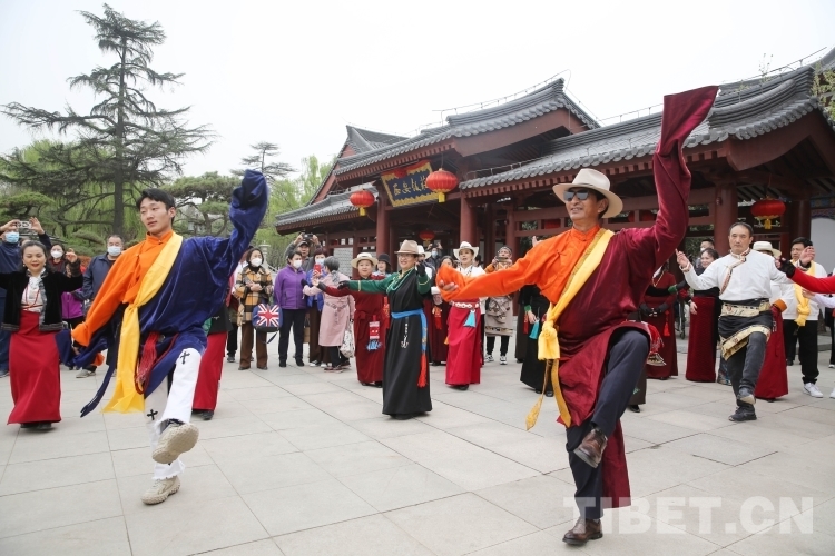 在大唐西市、興慶宮公園等地,沙多等多位藏舞推廣傳承人與西安當(dāng)?shù)劐伹f舞團(tuán)隊(duì)交流展演,現(xiàn)場(chǎng)氣氛熱烈。
