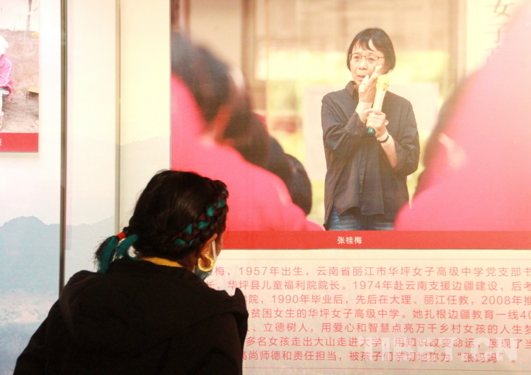 在眾多參觀展覽的人群中,有一位身著藏裝的西藏基層?jì)D聯(lián)干部,十分醒目,她總是笑意盈盈,用手機(jī)拍攝記錄著展覽的重點(diǎn),時(shí)不時(shí)與同伴分享心得。她叫索朗德吉,是來(lái)自西藏自治區(qū)林芝市工布江達(dá)縣江達(dá)鄉(xiāng)太昭村的婦聯(lián)主席,“通過(guò)觀看展覽,我系統(tǒng)了解到,百年來(lái),我們黨始終堅(jiān)持把實(shí)現(xiàn)婦女解放和發(fā)展、實(shí)現(xiàn)男女平等寫在自己奮斗的旗幟上?,F(xiàn)在的西藏,男女平等,婦女也能當(dāng)領(lǐng)導(dǎo),在工作崗位上展現(xiàn)著‘?huà)D女能頂半邊天’的巾幗力量。這事兒如果放到舊西藏,那是想都不敢想的?!彼骼实录f(shuō),“在中國(guó)共產(chǎn)黨的領(lǐng)導(dǎo)下,我們村早已發(fā)展成為天上有航線,地面有鐵路,生活富裕的小康村,聽(tīng)黨話、跟黨走是太昭人不變的信念,回去后我要把聽(tīng)到的、看到的、學(xué)到的,不光講給村里人,更要講給縣里人,激發(fā)出她們的民族自豪感,共同澆灌民族團(tuán)結(jié)的參天大樹(shù)?!?/p>