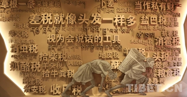 圖為西藏民主改革第一村陳列館改陳展內(nèi)利用浮雕的方式生動(dòng)展現(xiàn)了民主改革前“農(nóng)奴”背負(fù)沉重的差稅 攝影:王佳豪