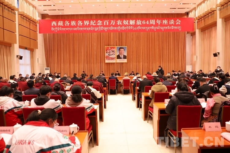 今年3月28日,翻身農(nóng)奴代表、離退休干部職工代表、農(nóng)牧民和城鎮(zhèn)居民代表、民族界代表、宗教界代表、黨外知識分子代表、新的社會階層人士代表、歸國定居藏胞代表、民營經(jīng)濟(jì)界人士代表、師生代表等各族各界代表120余人歡聚一堂,謳歌時代暢談未來。
