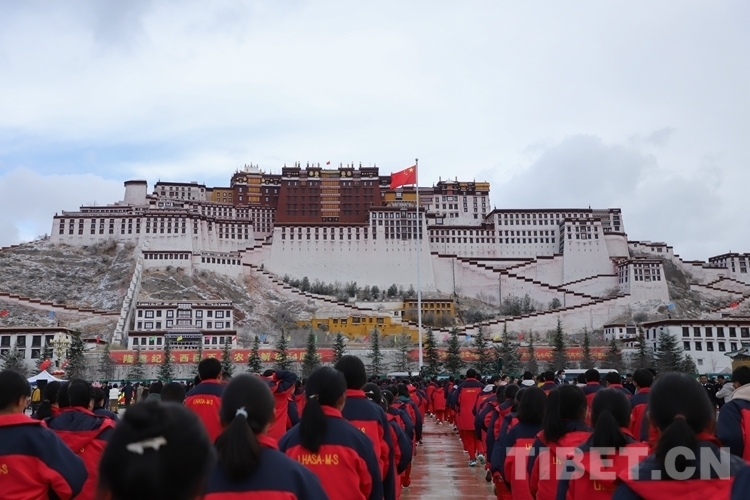 28日清晨,瑞雪洗禮拉薩,處處煥然一新,在干凈清新的氣息中,來(lái)自西藏各族各界的代表2000余人齊聚布達(dá)拉宮廣場(chǎng),以升國(guó)旗、唱國(guó)歌的方式紀(jì)念百萬(wàn)農(nóng)奴解放64周年。