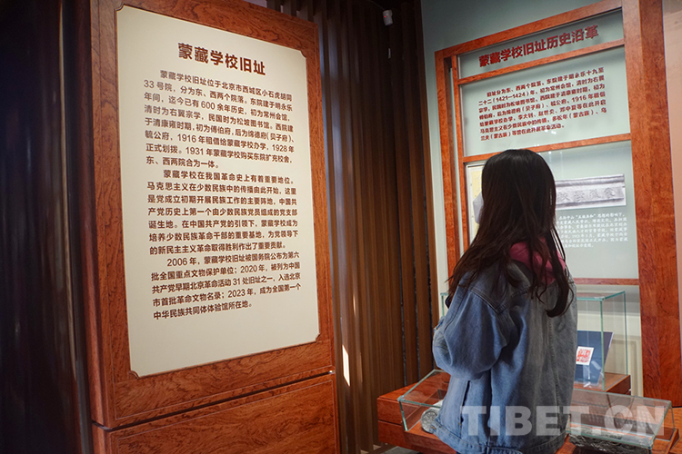 舊址西院,“蒙藏學校舊址專題展”主要展示舊址歷史沿革和革命活動,蒙藏學校學生參加五四運動;李大釗、鄧中夏、趙世炎等對蒙藏學校青年的馬克思主義啟蒙和革命引導;烏蘭夫、多松年 等 蒙藏學校進步青年參加校內(nèi)外革命活動……突出展現(xiàn)中國共產(chǎn)黨成立后在這里組織開展革命斗爭的歷史?!爸腥A一脈 同心筑夢”主題展分為“共同締造新中國”“團結(jié)建設新社會”“攜手奮斗繁榮路”“同心奮進新時代”4個部分。展出照片420多幅,實物、文獻、檔案280余件,藝術(shù)展 項 18項,重點展示新時代民族工作取得的新的歷史性成就。