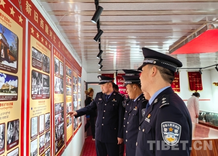 圖為邊巴邊境派出所組織民警前往駐地紅色教育基地參觀新舊西藏對比展覽 攝影:曾勇