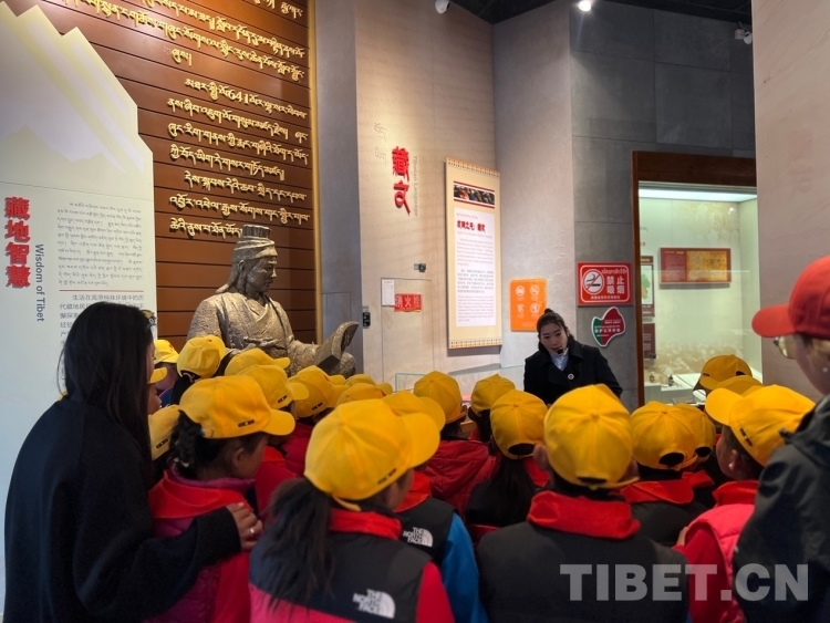 走進(jìn)“藏地智慧”,學(xué)生們一眼認(rèn)出藏文創(chuàng)始人吞彌·桑布扎,大家異口同聲回答講解員的問題說:“這是吞彌·桑布扎?!钡玫街v解員的肯定、并向他們講述背后的相關(guān)歷史后,學(xué)生們聽得很入迷,也更有信心面對接下來的問題。藏文的信息化使得這一古老文字煥發(fā)著全新而旺盛的生命力,在這里學(xué)生們欣賞藏文在智能手機(jī)、電腦、多功能點(diǎn)讀機(jī)等智能電子設(shè)備內(nèi)“走動(dòng)”、傳統(tǒng)農(nóng)牧業(yè)的模擬場景和現(xiàn)代化的機(jī)械設(shè)備圖、藏醫(yī)藥材、藏香藏紙制造和制鹽過程等獨(dú)具特色的藏族傳統(tǒng)手工藝,也能很好的回答講解員提出的問題,現(xiàn)場互動(dòng)氣氛熱烈。“這種活動(dòng)我們學(xué)校不會(huì)常有,當(dāng)孩子們聽到要去拉薩時(shí)像是要過年那樣高興,一路上問這問那地充滿好奇?!倍喟奏l(xiāng)小學(xué)的帶隊(duì)老師羅珍介紹:“這次參加活動(dòng)的這些學(xué)生都是三、四、五年級的學(xué)生,個(gè)個(gè)品學(xué)兼優(yōu)?!?/p>