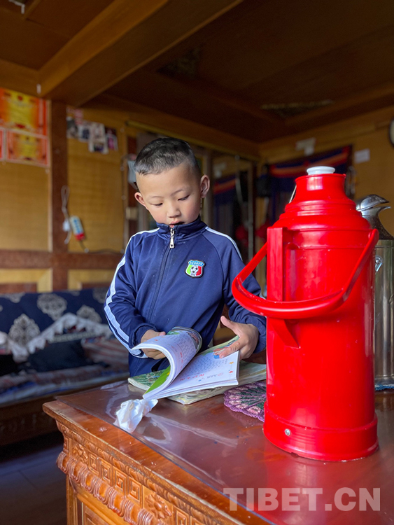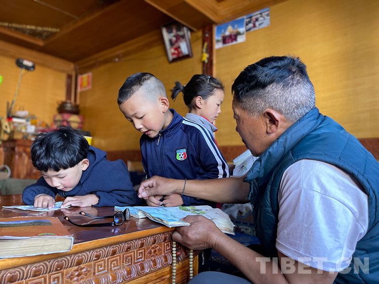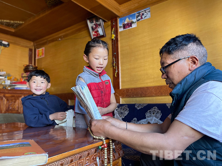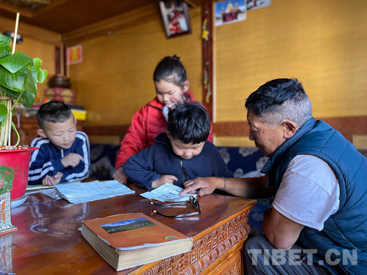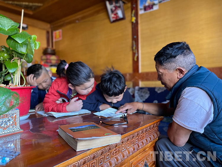 阿噶大爺自己粗通藏文,能督促和檢查藏文作業(yè),孩子們則非常享受爺爺驗收他們的學(xué)習(xí)成果,每次都爭先恐后地請爺爺聽自己的發(fā)音和背誦是否準(zhǔn)確。平時老師還會安排上網(wǎng)課,因此不會耽誤他們的學(xué)業(yè)。