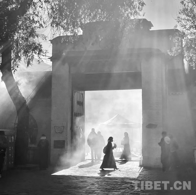 拉薩小昭寺有兩個大型桑爐,都設在遠離危險地帶的寺院大門兩側,并有消防員值守,因此,當香爐里的桑煙燃起時才有可能出現這種壯觀的“丁達爾”現象。