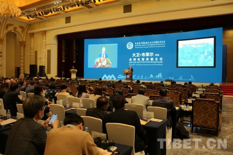 圖為大衛(wèi)·布萊爾在第五屆中國西藏旅游文化國際博覽會主旨論壇發(fā)表演講 攝影:王佳豪