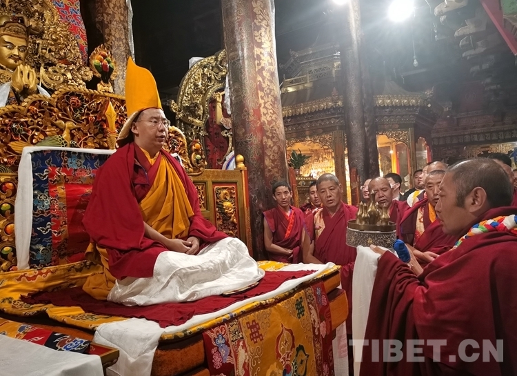 中國西藏網(wǎng)訊 6月25日凌晨,全國政協(xié)常委、中國佛教協(xié)會(huì)副會(huì)長、中國佛教協(xié)會(huì)西藏分會(huì)會(huì)長班禪額爾德尼·確吉杰布在拉薩大昭寺朝拜釋迦牟尼佛像,并為大昭寺僧眾摸頂賜福。