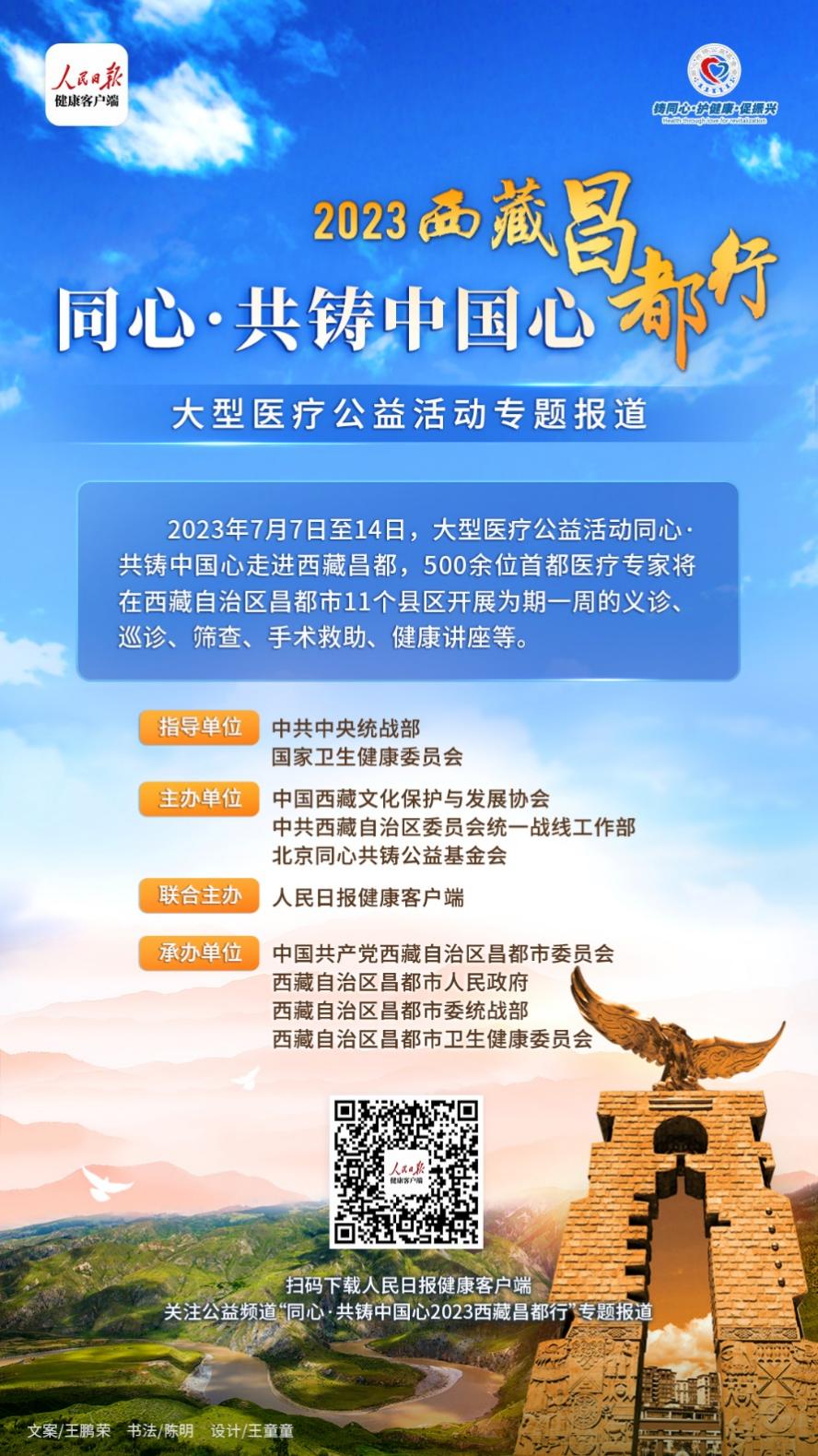 本次活動由中共中央統(tǒng)戰(zhàn)部、國家衛(wèi)健委指導,中國西藏文化保護與發(fā)展協(xié)會、中共西藏自治區(qū)委員會統(tǒng)一戰(zhàn)線工作部、北京同心共鑄公益基金會主辦,人民日報健康客戶端聯(lián)合主辦,將結(jié)合當?shù)亓餍胁W特點和醫(yī)療衛(wèi)生事業(yè)發(fā)展現(xiàn)狀,開展疾病篩查、義診巡診、高原手術(shù)、專業(yè)幫扶、健康科普和愛心捐贈等多種形式的健康幫扶工作。