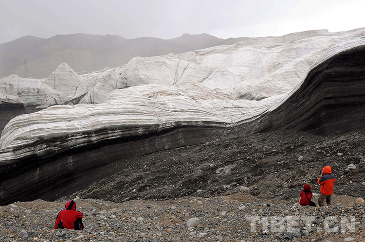 幾位游客在觀賞普若崗日冰川的壯美景觀(唐召明2009年攝)