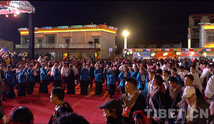 歌舞晚會(huì)結(jié)尾時(shí),出席晚會(huì)的嘉賓同現(xiàn)場(chǎng)的一千余名群眾及演職人員踩著優(yōu)美動(dòng)聽(tīng)的弦音,共跳曾榮創(chuàng)“最大弦子舞教學(xué)課堂”世界紀(jì)錄認(rèn)證,集文化、歷史、民俗元素于一身的弦子舞。(中國(guó)西藏網(wǎng) 供稿/芒康縣藝術(shù)節(jié)組委會(huì)辦公室)