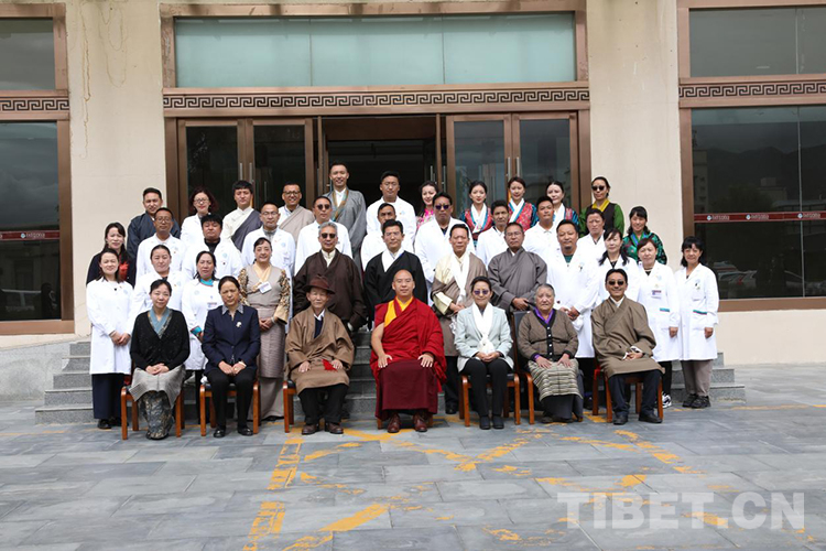 圖為班禪與藏醫(yī)院相關(guān)人員合影留念 攝影:旺啦