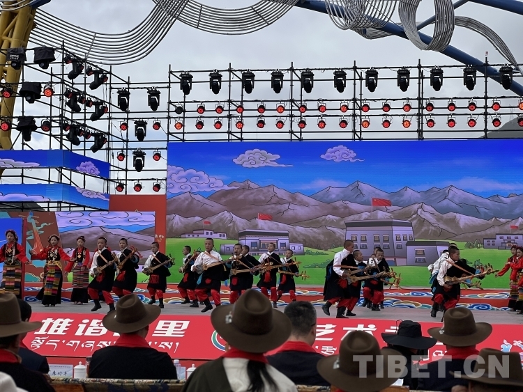 開幕式在莊嚴(yán)的國(guó)歌聲中拉開序幕。開幕式文藝演出聚焦“堆諧故里,藝術(shù)之鄉(xiāng)”,由拉孜縣藝術(shù)團(tuán)、民間業(yè)余演出隊(duì)、九大藏戲隊(duì)、少兒藝術(shù)隊(duì),芒普鄉(xiāng)、扎西崗鄉(xiāng)、柳鄉(xiāng)藝術(shù)隊(duì)演出藏戲、堆諧、諧欽(“諧”藏語意為歌舞,“欽”即盛況或隆重之意)、洛諧(定日縣為主的南部歌舞)、果諧(圓圈舞)以及區(qū)內(nèi)知名歌手演唱歌曲組成。整個(gè)演出融合傳統(tǒng)民族非遺文化與現(xiàn)代歌舞元素,演出內(nèi)容既富有傳統(tǒng)特色又極具時(shí)代魅力,充分展示了拉孜各族人民昂揚(yáng)向上、團(tuán)結(jié)奮進(jìn)、開放包容的精神面貌。