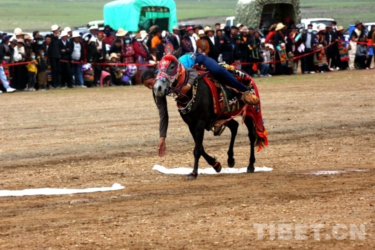 而馬術表演,則由參賽選手為現(xiàn)場觀眾表演馬上拾哈達等傳統(tǒng)馬術表演項目。