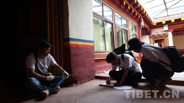 在十幾天的綜合科考活動(dòng)中,科考團(tuán)隊(duì)的青年隊(duì)員們持續(xù)克服高原缺氧、路途顛簸和水土不服等各方面的困難,順利完成了綜合科考隊(duì)下達(dá)的每日科考任務(wù)。身處青藏高原的腹地,青年隊(duì)友們每天早上八點(diǎn)半從營地出發(fā),完成各類田野調(diào)查和測(cè)繪工作,歸來已經(jīng)是晚上的八、九點(diǎn)鐘。在吃過晚飯后,他們會(huì)著手整理每天的田野工作成果,直至深夜。在這樣的工作強(qiáng)度之下,青年隊(duì)員們最終完成了五個(gè)鄉(xiāng)鎮(zhèn)、八個(gè)行政村和二十一個(gè)自然村的共計(jì)六十棟古建筑的測(cè)繪工作。