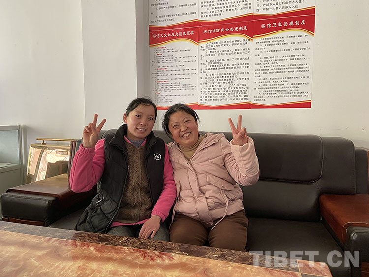 2001年,老公從格爾木坐長途汽車去拉薩。那時不是夫妻關系,卻彼此認識。他在拉薩打拼幾年,主要是酒店經營這一塊。2006年,青藏鐵路通車那一年,她坐上火車去拉薩投親,開始在剛堅飯店打工,后來又換了幾家酒店。由于都在同一行業(yè),之前又認識,張保英與先來的他很快情感升華,成為一家人。