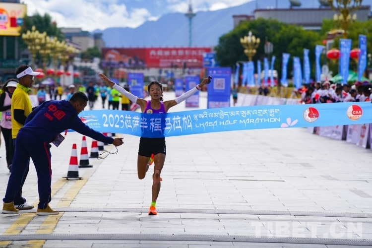 半馬女子組冠軍次仁措姆抵達終點 攝影:趙振宇