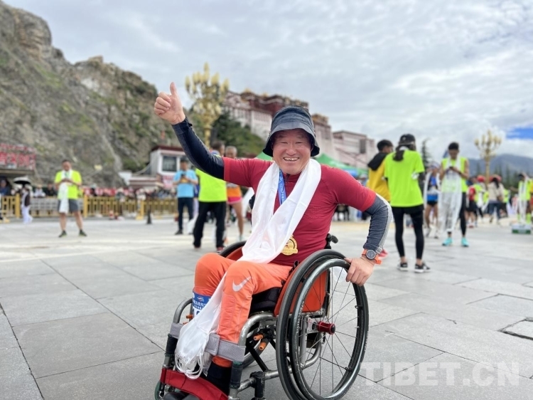 “馬拉松是一項極限運動,這里是海拔最高的馬拉松比賽,我是本屆比賽殘疾人運動員中歲數最大的。沿途的風景很美,后勤保障也做的很到位,希望有更多的殘疾人像我一樣走出來?!眮碜院幽下尻柕臍埣踩诉\動員商長斌今年61歲,完賽后他臉上洋溢著難以掩飾的笑容接來工作人員向他敬獻哈達和獎牌。