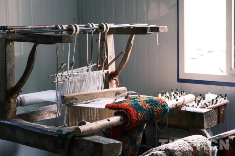 走進(jìn)氆氌紡織間,隊員們看到木質(zhì)的紡織機(jī)在吱嘎作響,工人左右手快速地配合,雙腳在幾個踏板間有條不紊地轉(zhuǎn)換,雙眼緊隨著雙手快速地游移目光,嫻熟程度令人嘆為觀止。