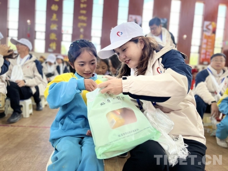 物資捐贈儀式上,共鑄中國心組委會向貢嘎縣崗堆鄉(xiāng)中心小學(xué)捐贈暖衣550件和碳酸鈣咀嚼片500盒,向旁多鄉(xiāng)中心小學(xué)捐贈保暖衣305余件和碳酸鈣咀嚼片400盒,組委會希望孩子們保暖舒適,健康茁壯成長。