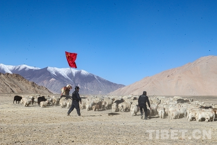 中國(guó)西藏網(wǎng)訊 季節(jié)變換、冬意漸濃,隨著草原牧場(chǎng)氣溫降低,西藏阿里地區(qū)日土縣又到了牧民轉(zhuǎn)場(chǎng)“冬窩子”的日子。10月28日,西藏阿里邊境管理支隊(duì)日土邊境派出所民警走進(jìn)日土縣熱角村,“增援”派出所長(zhǎng)期駐守在此的熱角村警務(wù)室,與牧民共同趕著牛羊群帶著物資,浩浩蕩蕩地從夏季牧場(chǎng)遷徙至冬季牧場(chǎng)。