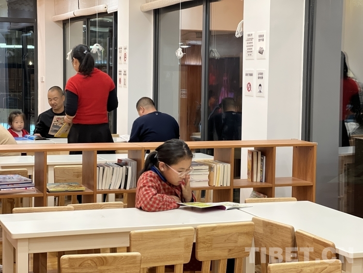 走進(jìn)蓮花書(shū)屋,一樓的書(shū)架和閱讀區(qū)幾乎坐滿(mǎn)了專(zhuān)心閱讀的大人小孩。“我喜歡來(lái)公園散步,這里環(huán)境很美。前天過(guò)來(lái)散步時(shí),看到我期待已久的書(shū)屋終于可以進(jìn)去看書(shū)了。家里的書(shū)都被我看完了,所以我這兩天一寫(xiě)完作業(yè)就要來(lái)這里看新的書(shū)?!蔽迥昙?jí)的德央措姆在少兒閱讀區(qū)翻看書(shū)籍,她為能夠擁有這樣的讀書(shū)環(huán)境而感到很高興。