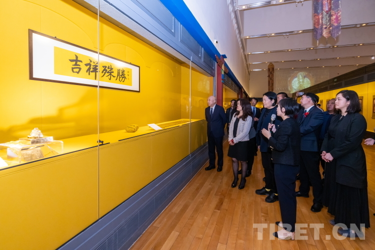 中國西藏網(wǎng)訊 12月15日,“吉祥殊勝——故宮與扎什倫布寺珍藏文物展”在澳門藝術(shù)博物館隆重開幕。澳門特別行政區(qū)政府社會文化司司長代表、社會文化司司長辦公室主任何鈺珊,故宮博物院院長王旭東,中央人民政府駐澳門特別行政區(qū)聯(lián)絡辦公室副主任嚴植嬋,西藏自治區(qū)文物局黨組書記趙興邦、文化局局長梁惠敏、扎什倫布寺管理委員會副主任洛桑扎西,澳門基金會行政委員會主席吳志良、旅游局局長文綺華及澳門日報社長陸波出席開幕現(xiàn)場。