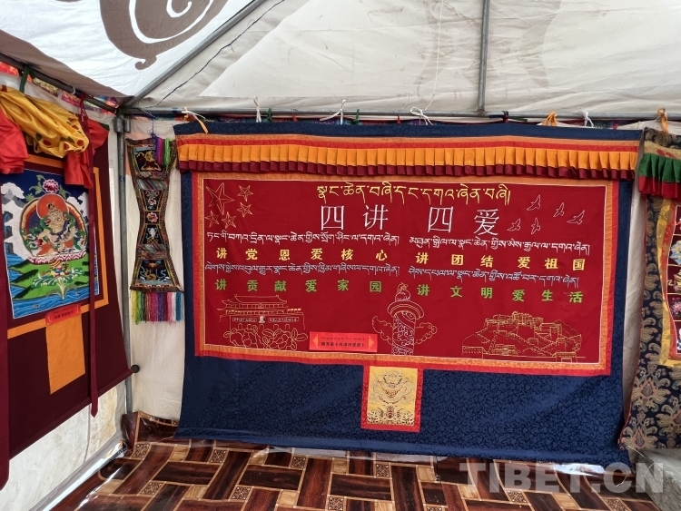 一針一線一幅畫,一時一日一春秋。在潔白的帳篷里,不時有游客進出,欣賞著夫妻二人所制作的白度母珍珠唐卡、布達拉宮堆繡唐卡、“四講四愛”刺繡唐卡等精美作品。土旦旦增與次旦卓瑪手下不僅僅是飛針走線,更是“繡出”他們的美好生活。(中國西藏網(wǎng) 記者/德吉卓瑪)