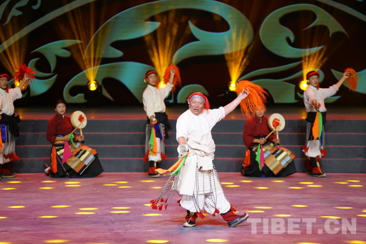 圖為西藏昌都市丁青縣尺牘鎮(zhèn)烏巴村文藝隊正在上演的《古老的祖華熱巴》 攝影:趙振宇