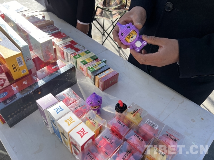 “這種違規(guī)電子煙產(chǎn)品很容易誘導(dǎo)小孩,家長(zhǎng)一定要注意辨別?!薄翱?!這兩種卷煙的煙絲、外包裝、鋼印都是有區(qū)別的……”活動(dòng)現(xiàn)場(chǎng),西藏自治區(qū)煙草專(zhuān)賣(mài)局工作人員景浩拿著真假香煙和類(lèi)似玩具的電子煙向圍觀的群眾講解如何分辨產(chǎn)品的真?zhèn)巍?/p>