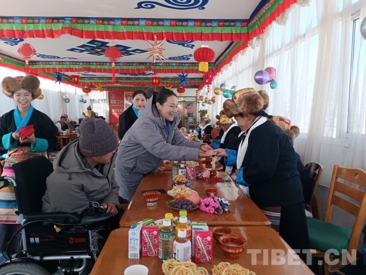 圖為供養(yǎng)服務(wù)中心領(lǐng)導(dǎo)在藏歷新年慰問老人 攝影:旦曲