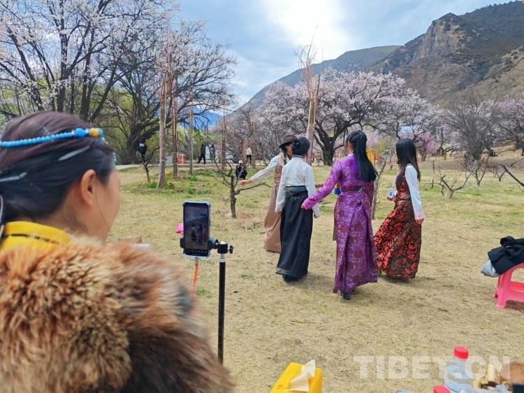 在嘎拉村桃花源內(nèi)、民族文化體驗(yàn)區(qū)、產(chǎn)品展銷(xiāo)點(diǎn)……都能看到林芝市職業(yè)技術(shù)學(xué)校學(xué)生們的身影。學(xué)生們走進(jìn)桃花林,以藍(lán)天白云、皚皚雪山為背景,通過(guò)直播帶全國(guó)各地的網(wǎng)友們?cè)朴瘟种ァ疤一ǖ谝淮濉?,展示著桃花灼灼盛開(kāi)的美景。他們生動(dòng)的解說(shuō)和精彩的直播吸引了大量觀眾“云游林芝 云賞桃花”,體驗(yàn)不一樣的桃源春色。
