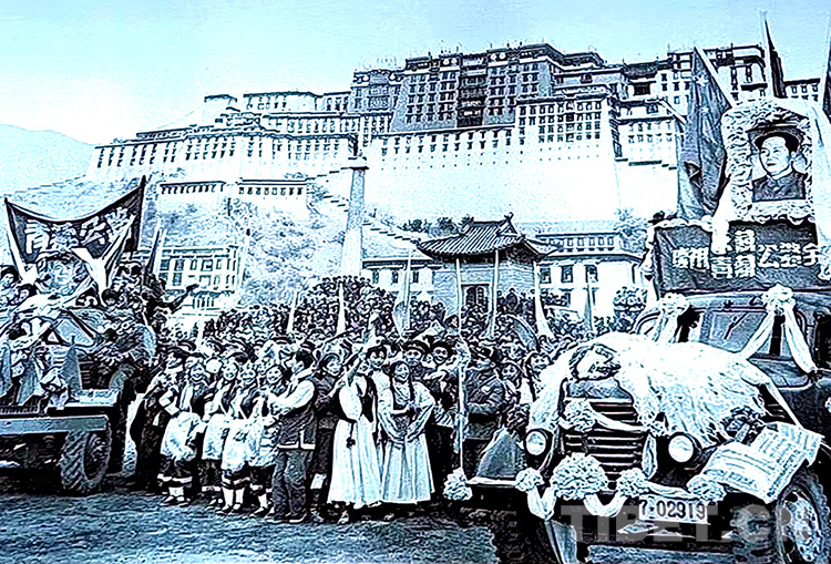 圖為1954年12月25日,在布達(dá)拉宮廣場(chǎng)舉行的青藏、川藏公路通車(chē)儀式(翻拍)