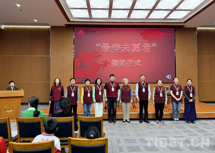 活動中還舉行了西藏文化博物館2023年度十大“最美志愿者”頒獎儀式。最美志愿者代表劉福剛表示,獲此殊榮十分激動,在西藏文化博物館當志愿者的兩年多時間里,已經完全把自己與西藏這片高原熱土、與厚重的西藏歷史文化、與美麗的西藏文化博物館融為一體。