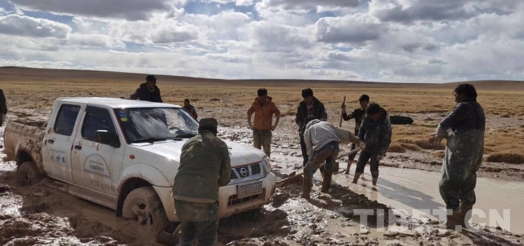 圖為強巴和同事在巡護路上被困(強巴供圖)