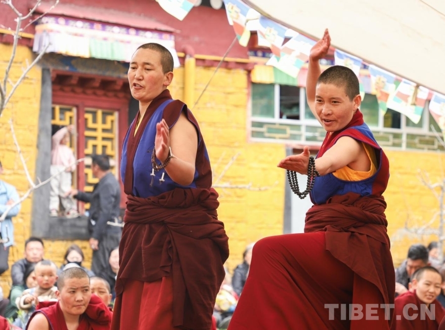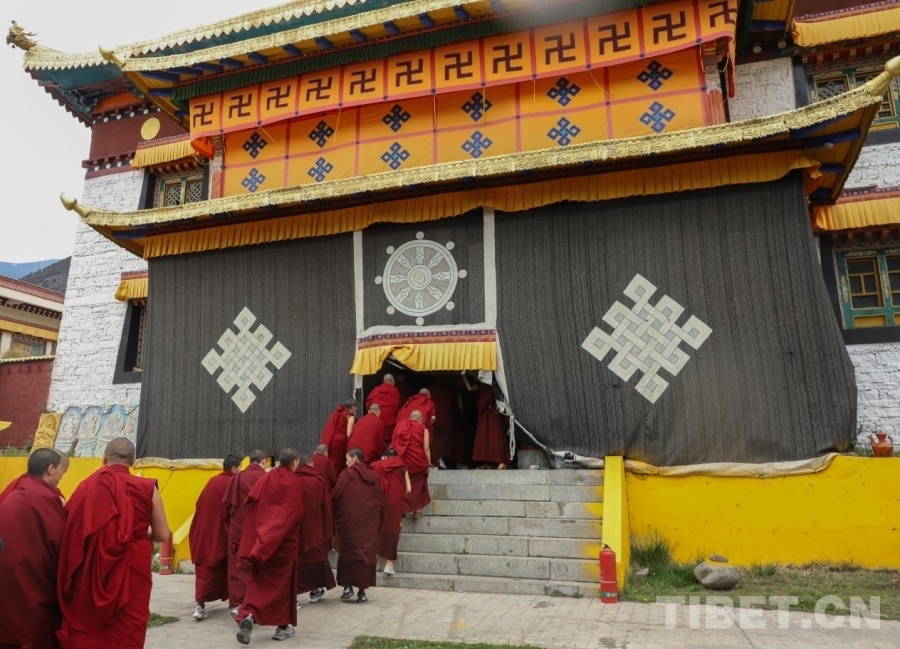 圖為西藏佛學(xué)院尼眾班學(xué)員抵達吉日寺