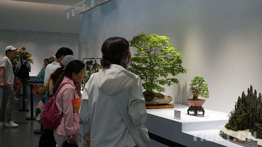 圖為游客正在參觀盆景 攝影:張宇