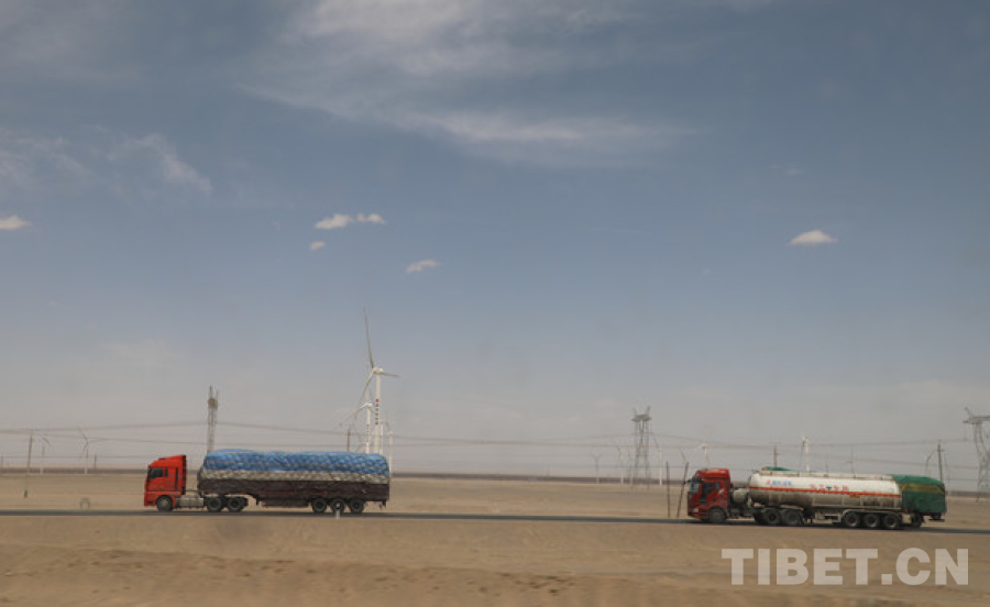 圖為貨車在青藏公路上奔馳 攝影:王茜