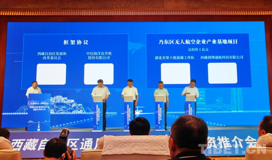 中國西藏網訊 6月18日,西藏自治區(qū)通用航空產業(yè)招商引資推介會在成都舉行。推介會上,西藏自治區(qū)投資促進局等5個單位與6家公司進行了簽約。