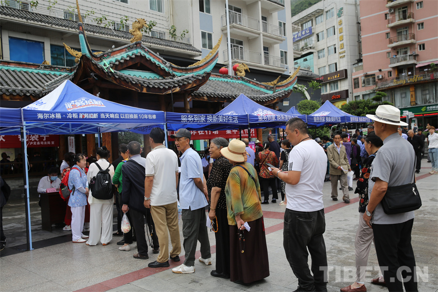 圖為瀘定橋廣場(chǎng)義診點(diǎn),專家正在為患者量血壓 攝影:登真巴珍
